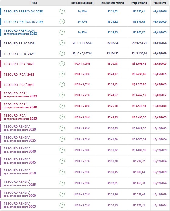 Confira os preços e as taxas dos títulos públicos disponíveis para compra no Tesouro Direto na manhã desta quinta-feira (27):
