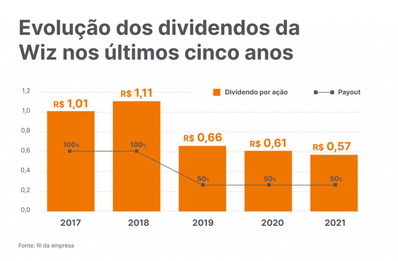 No exercício de 2021, a Wiz distribuiu R$ 94 milhões em dividendos. Obviamente, em 2022 esse montante pode ter alguma queda, por conta da Caixa.