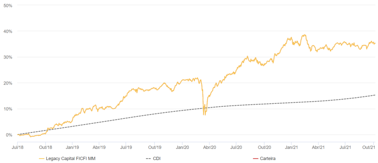 O Legacy Capital Multimercado rende cerca de 240% do CDI, desde seu início em 2018, como mostra o gráfico abaixo: