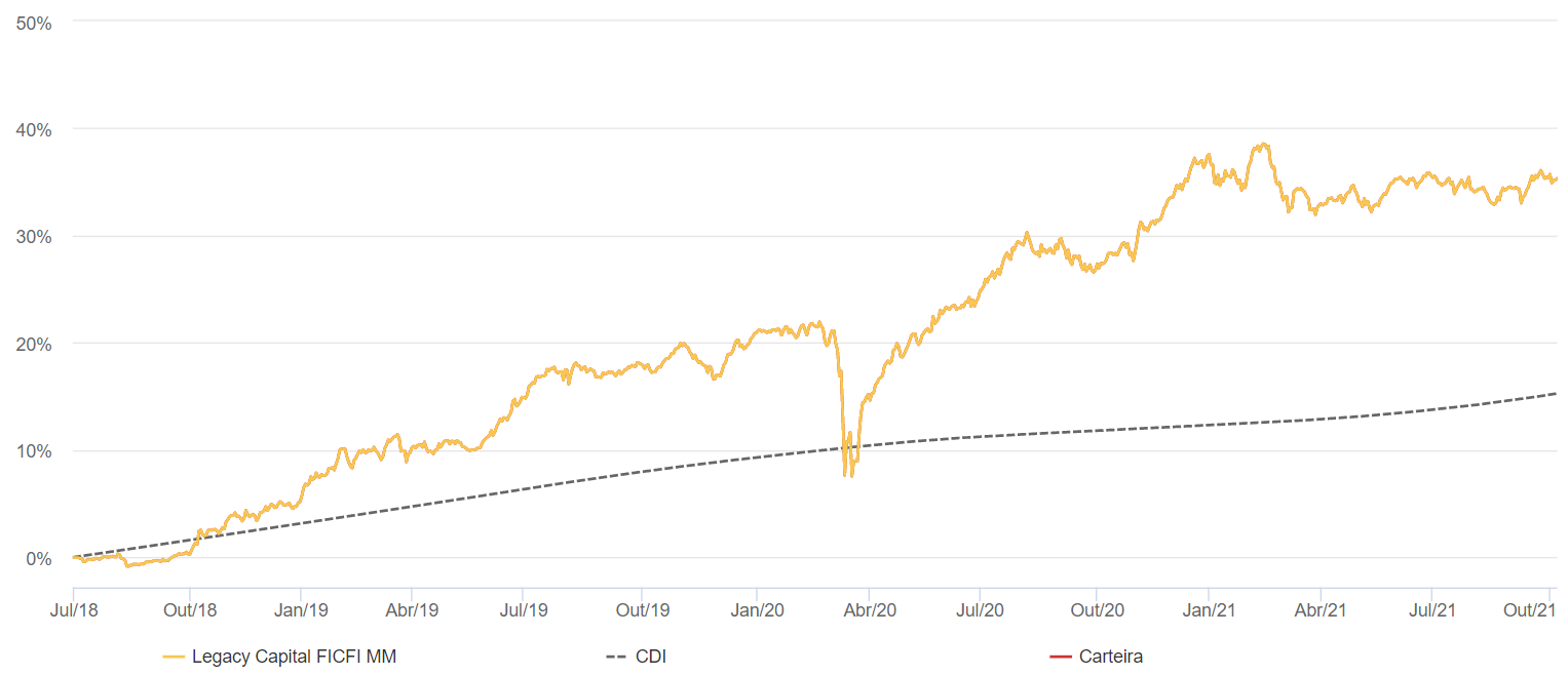 O Legacy Capital Multimercado rende cerca de 240% do CDI, desde seu início em 2018, como mostra o gráfico abaixo: