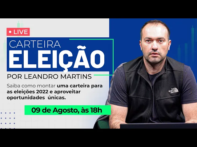 Clique aqui para ativar o lembrete da live de 9 de agosto, às 18h, em que Leandro Martins irá ensinar a montar uma Carteira Eleição para aproveitar as oportunidades que podem se abrir.