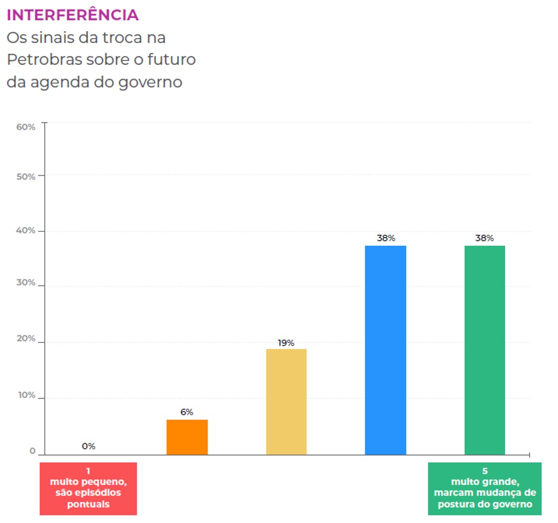 O levantamento também mostra que, na avaliação da maioria dos consultados (76%), a troca do comando da Petrobras e o corte de impostos federais sobre os combustíveis têm impactos significativos sobre o futuro da agenda econômica do governo e devem marcar uma mudança de postura da atual administração.