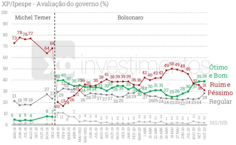 O levantamento também capturou a percepção do eleitorado sobre a motivação para as recentes ações de Bolsonaro. Para 51%, o mandatário tenta melhorar sua popularidade para buscar a reeleição em 2022. Tal percepção salta para 79% entre os que avaliam negativamente a atual administração, ao passo que soma 24% entre os apoiadores do presidente.